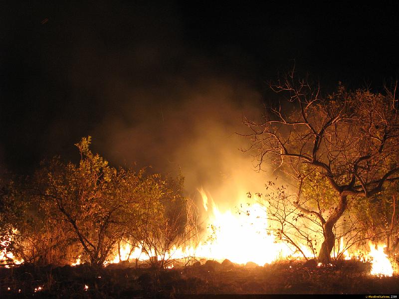 Buschbrand in der Nacht in der Nähe unseres Lagers — ist jedoch nicht gefährlich für uns. Wir freuen uns darüber, weil wir dadurch kein Lagerfeuer brauchen. Download Originalbild