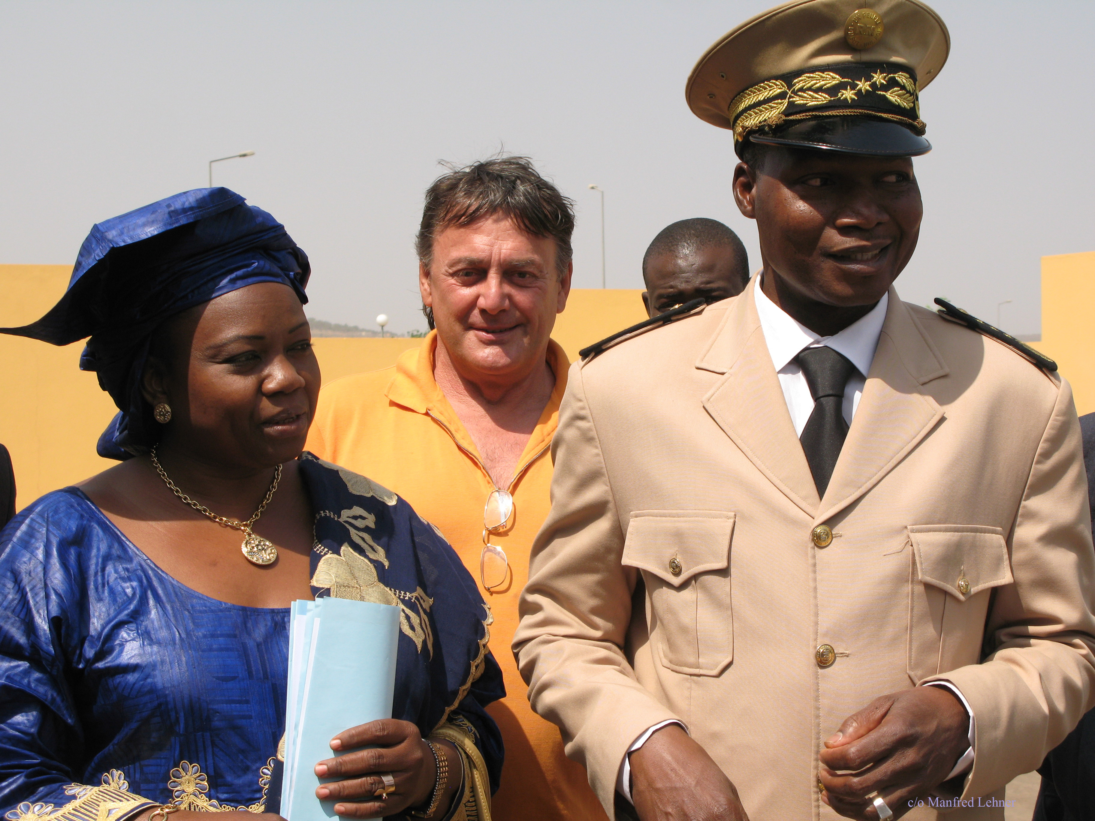 Gouverneur von Bamako und Gesundheitsministerin mit Veranstalter Dieter Scholz bei der Übergabe des Rettungswagens. Download Originalbild