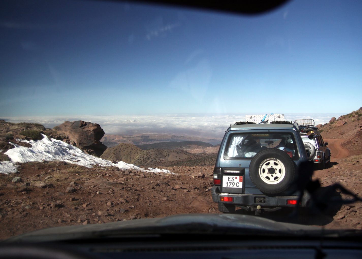 Die Einfahrt zu einem Feldweg, der an der Rückseite des Gebirges nach unten führt.