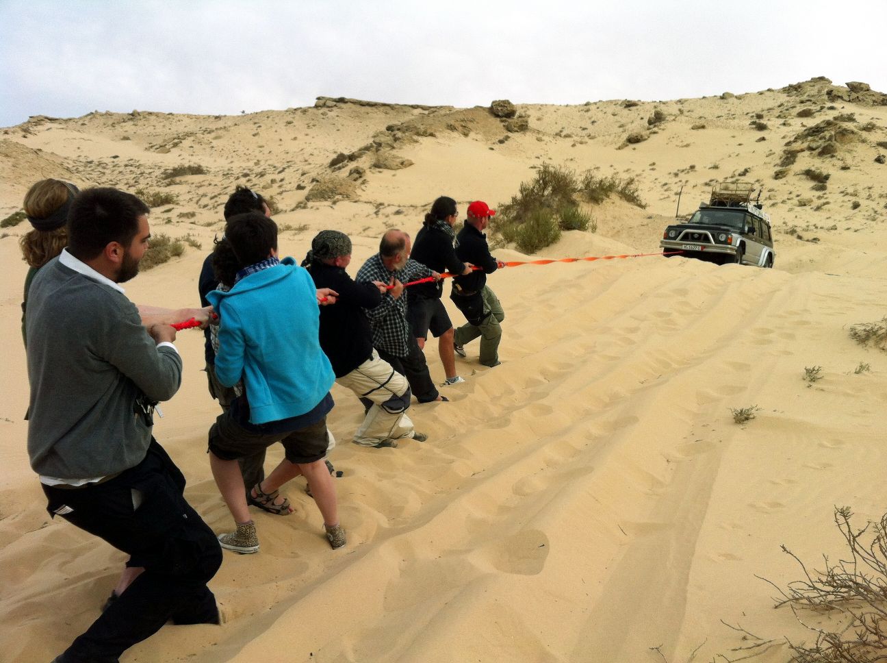 Es gelingt uns, mit reiner Muskelkraft, den Wagen rauszuziehen.