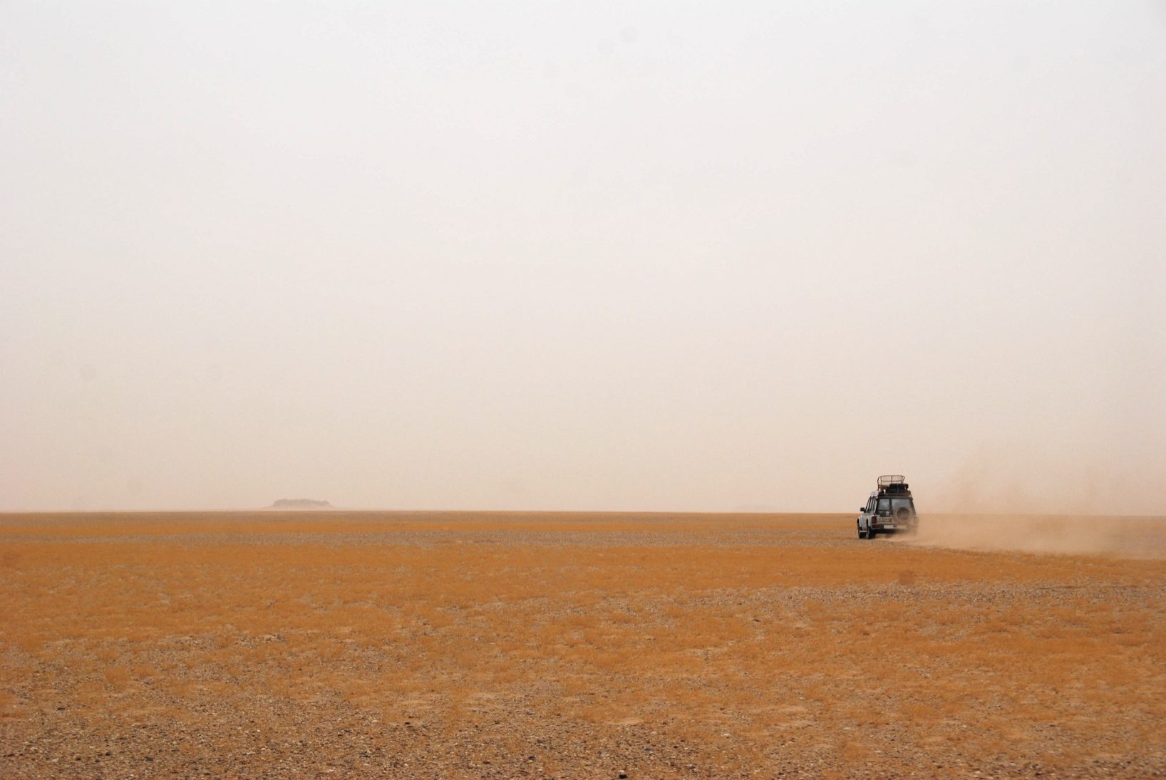 Eine Rarität: es hat geregnet. Durch das Gras können wir die Piste nicht finden.