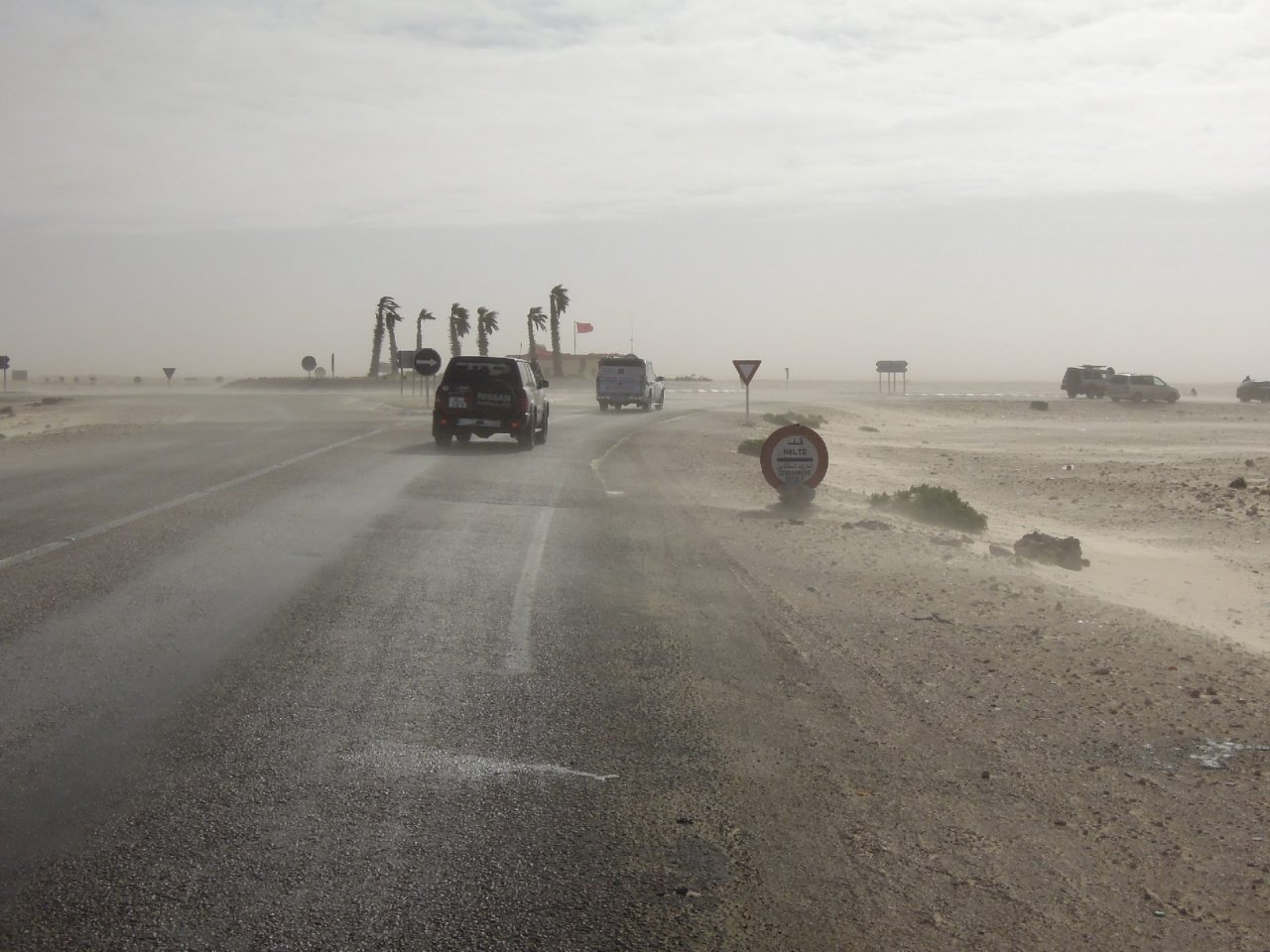 Polizeikontrolle und Abfahrt auf die Halbinsel von Dakhla