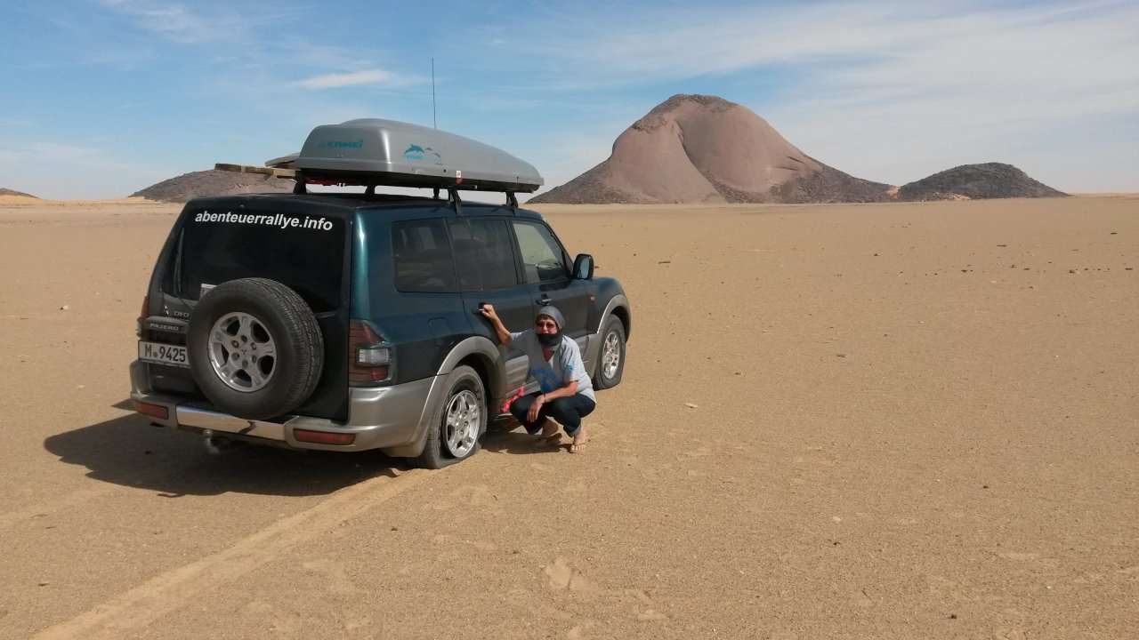 Claudia gelingt es, mit einem Stein zwei Platten zu fahren. Im Hintergrund nochmal der Monolith.