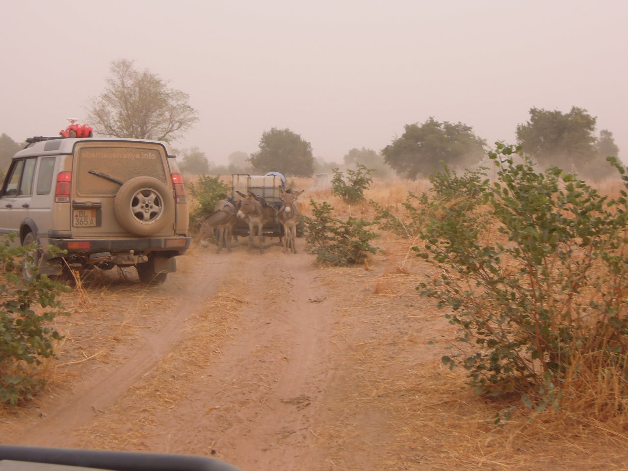 Wir müssen Eselkarren ausweichen, die uns allein entgegenkommen.