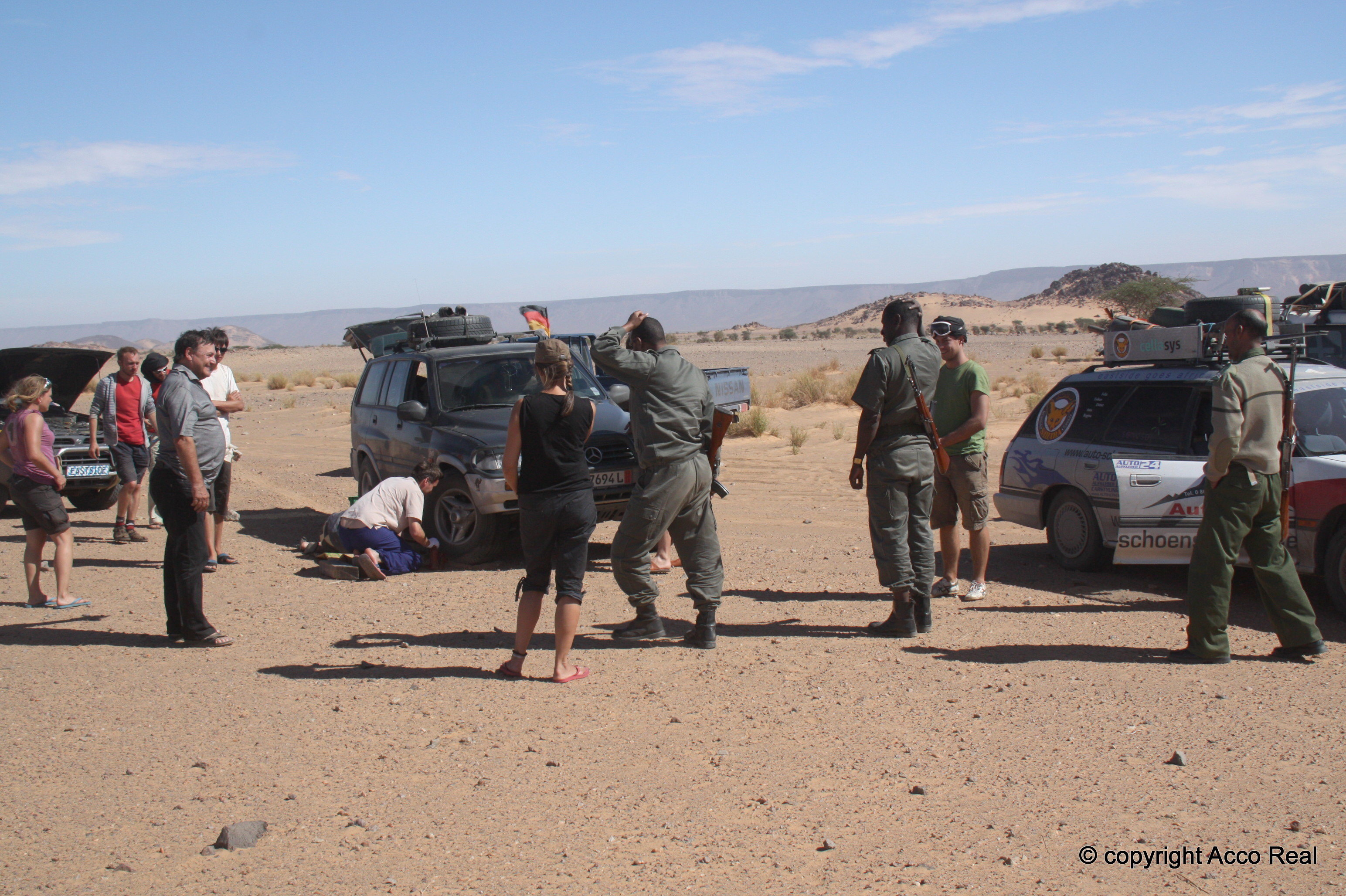 Der Soldat faßt sich an den Kopf als wir sagen, daß wir reparieren.