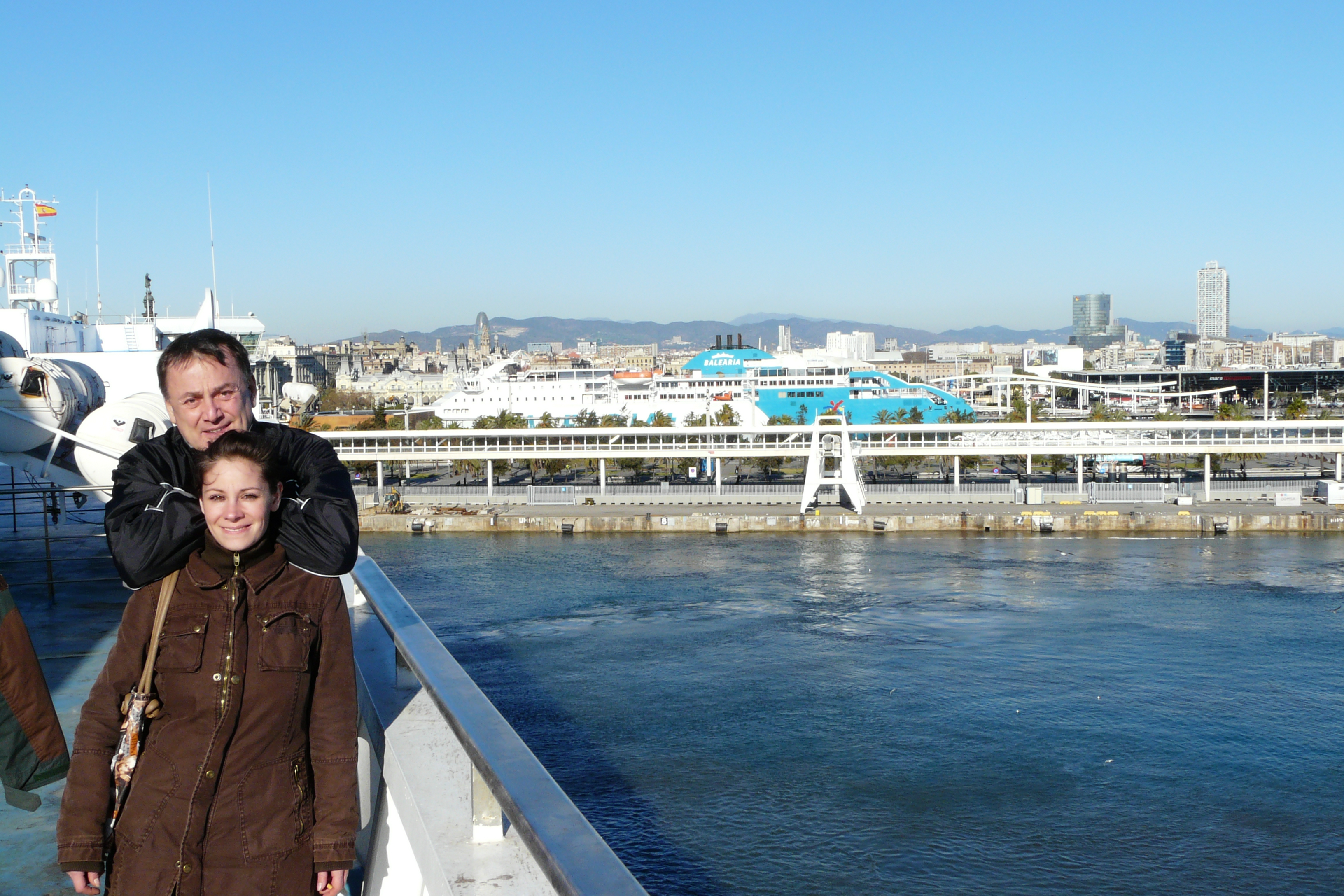 Veranstalter mit Melanie beim Zwischenstopp in Barcelona.