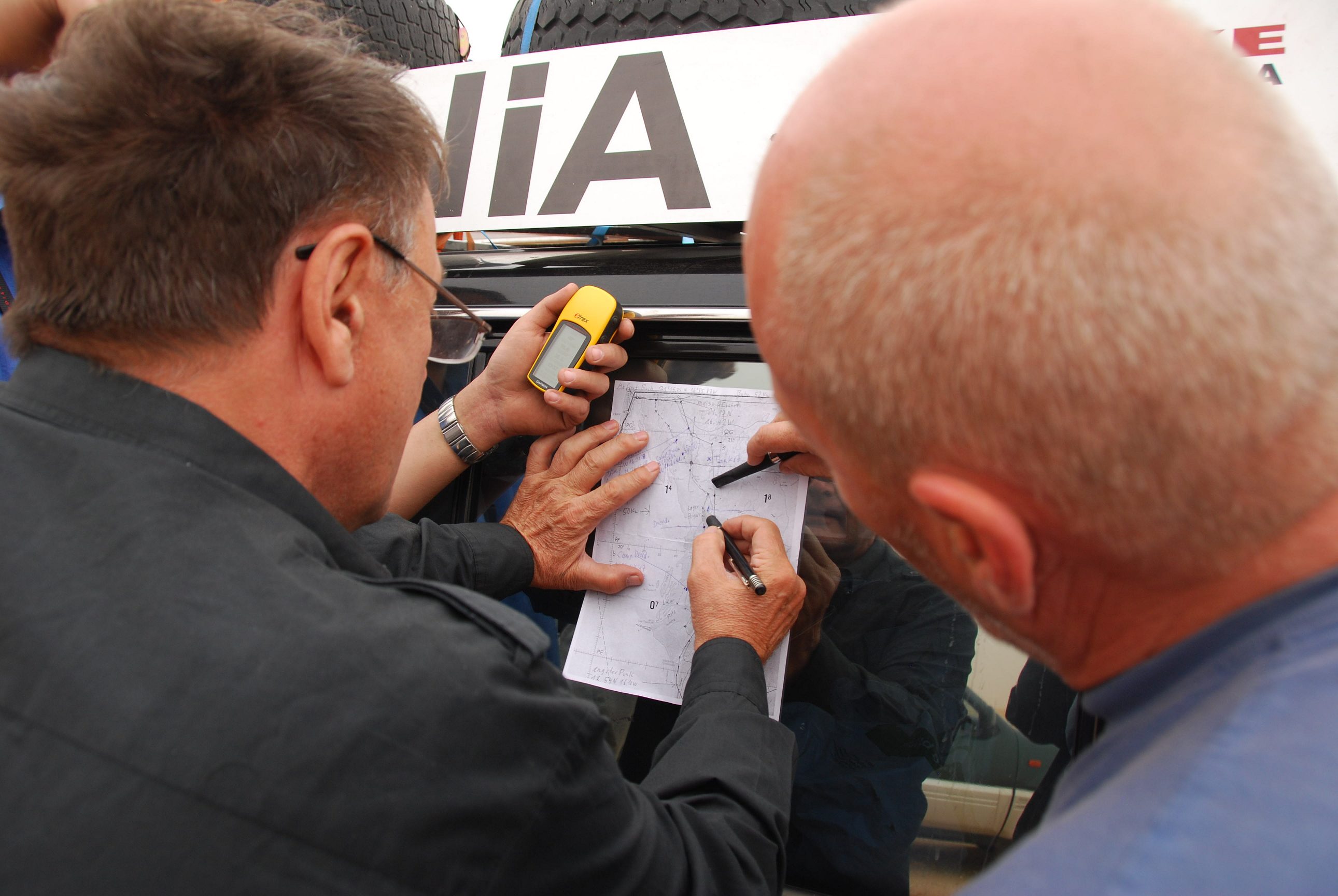 Da die Piste im Moment nicht zu sehen ist, wird mit dem GPS unser genauer Standort festgestellt.