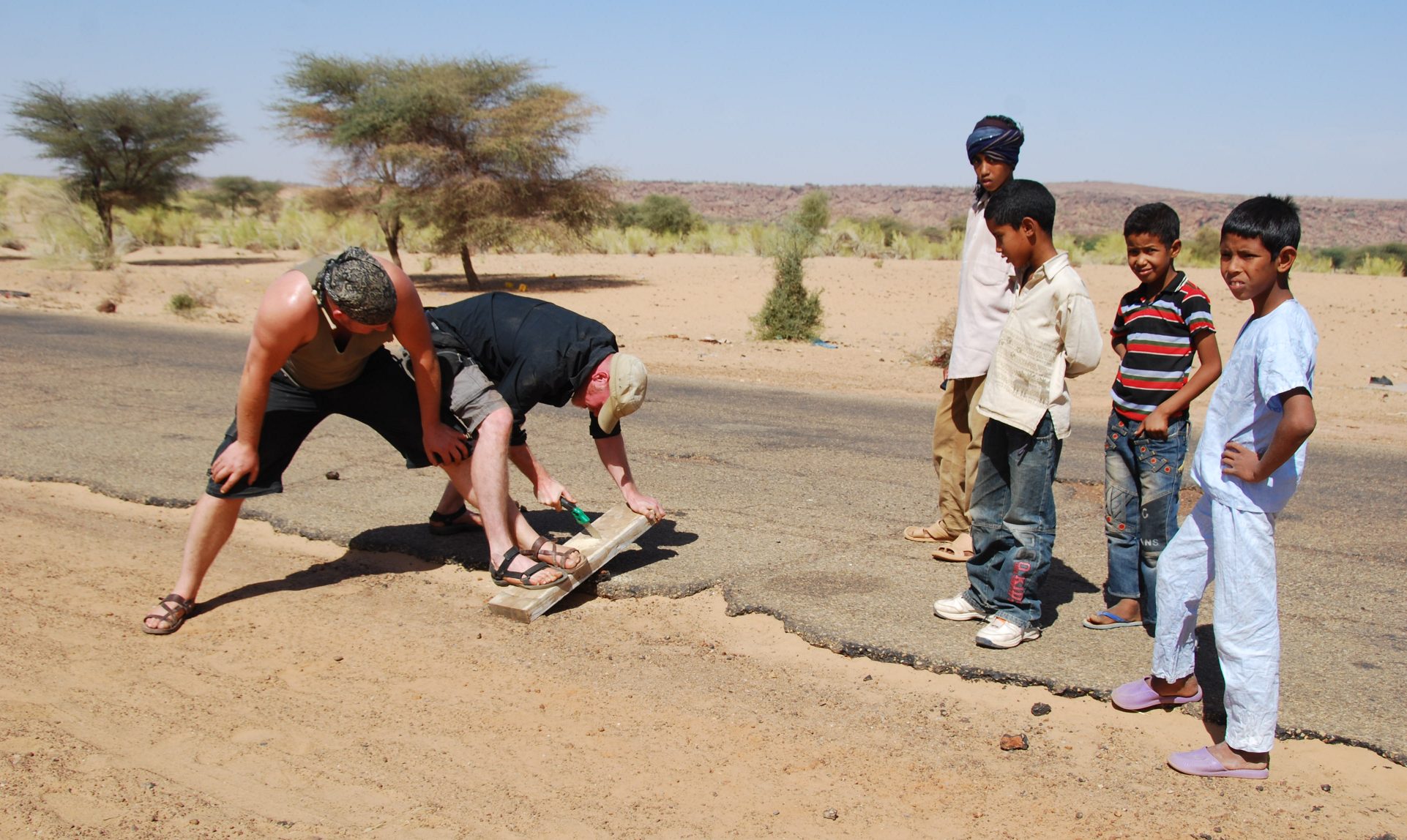 Die Federn sind auf's Bremsseil, so daß die Bremsen heißgelaufen sind und überhaupt nicht mehr gehen. Mit diesen Balken stützen wir die Federn.