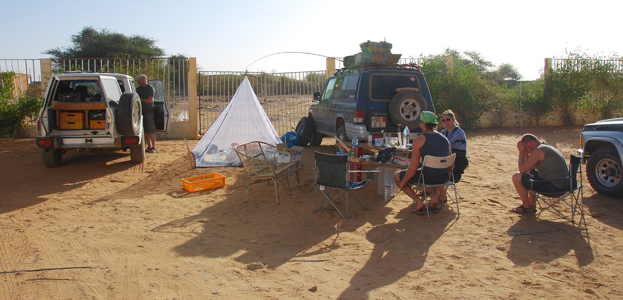 Wir schlagen Lager im Hof vom Hotel auf.