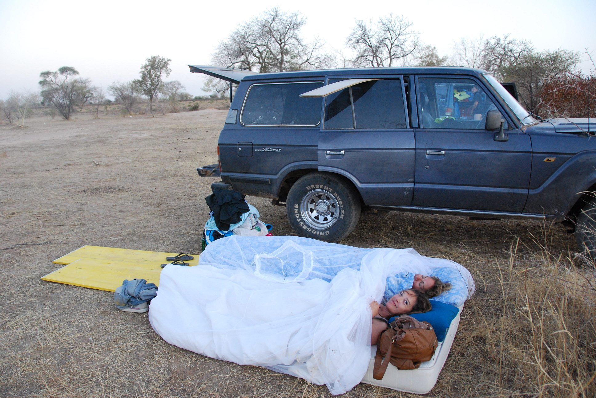 Lager wird aufgeschlagen; Kathi und Melli schlafen wie immer draußen.